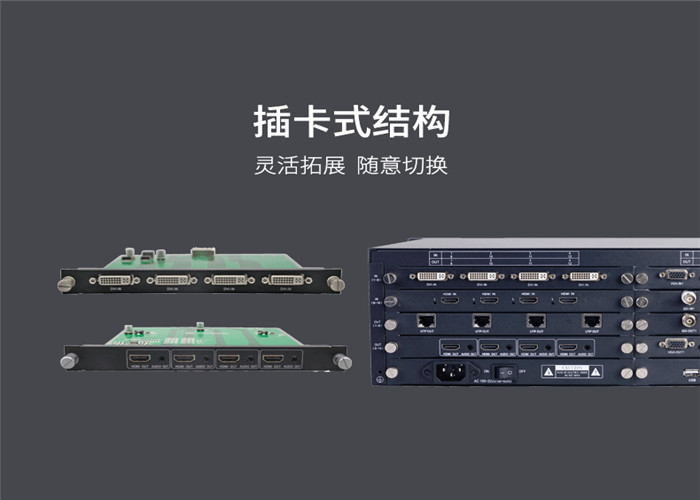 同时,矩阵搭载智能信号检测与优化模块:对模拟信号进行 ADC 采样补偿,对数字信号采用 Re-clocking 技术消除抖动,即使 15 米长距离传输也能保持 4K@60Hz 4:4:4 的高清画质。模块化设计更让输入输出板卡可灵活扩展,从 8 路到 256 路的配置需求均能满足,适配不同规模弱电项目。