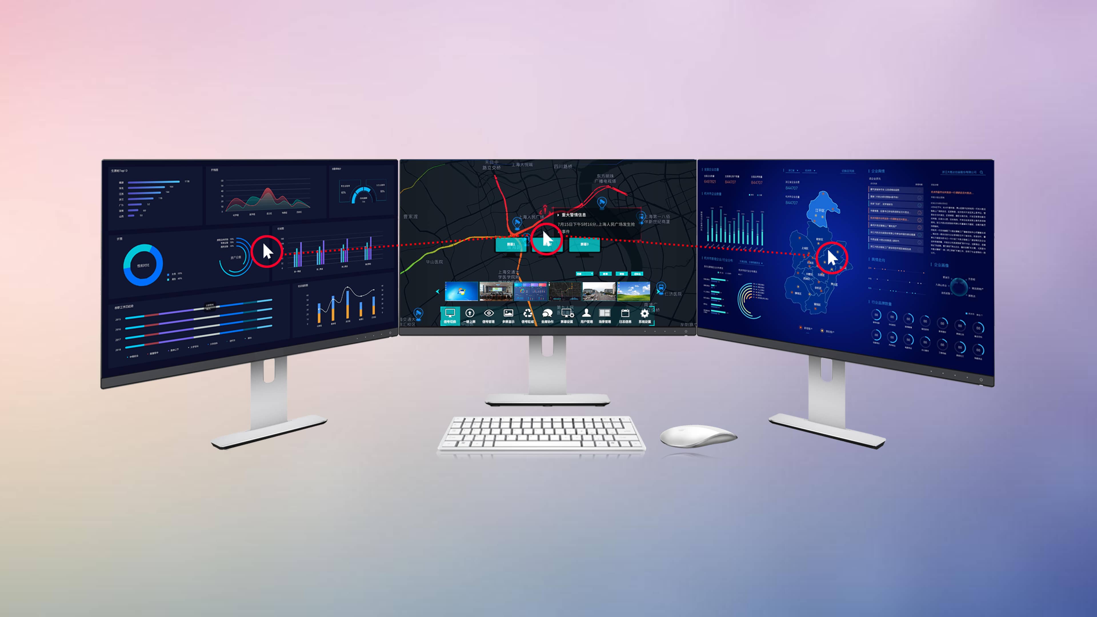 “人机分离”模式: 操作员只需一套键鼠,即可跨系统、跨网络地控制接入系统的所有计算机,大幅提升工作效率与空间整洁度。