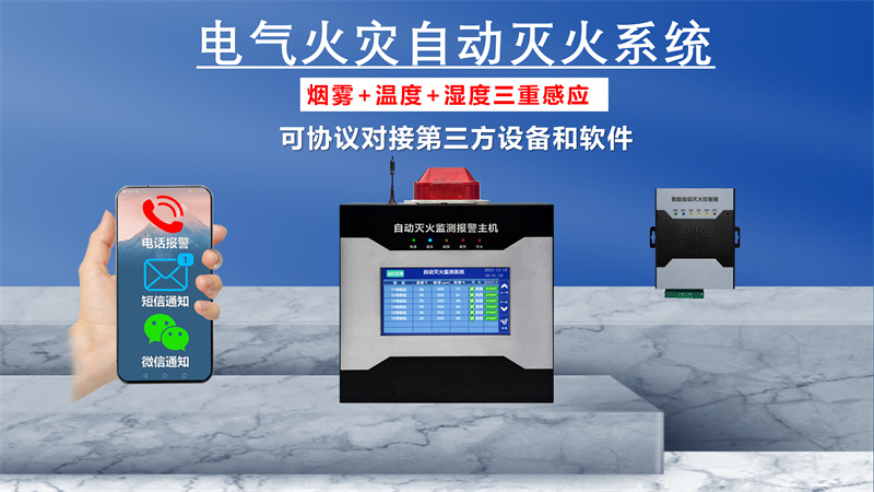 豪景物联 Hjot?4G623MH 4G自动灭火系统主机支持80 个防区,LoRa 空旷通信距离1000 米,工作频率 433?435MHz,工作电压 DC24V,配 7.5V/700mA 以上备用电池。探测范围:温度?40℃~120℃、湿度 0?99% RH、烟雾 0?2000ppm。主机尺寸 260×255×80mm,导轨安装,防护等级 IP20。灭火剂采用全氟己酮,无毒、不导电、无残留,臭氧损耗潜能值为 0,环保安全。